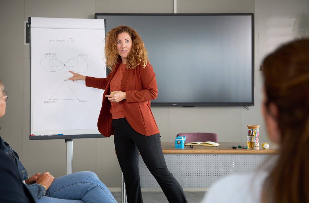• Praktijkgericht: In de lessen is er volop gelegenheid om de brug te slaan naar de praktijk door middel van oefenen, rollenspelen en casusbesprekingen met elkaar én de docenten.